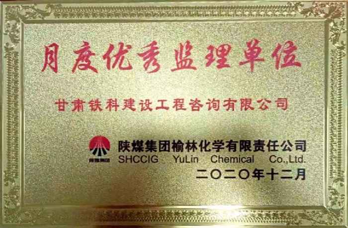 1月21日,甘肅鐵科榆林化學(xué)鐵路專用線監(jiān)理項(xiàng)目部在榆林化學(xué)有限公司組織的監(jiān)理月度綜合大檢查中綜合評分第一名,獲“榆林化學(xué)有限公司月度優(yōu)秀監(jiān)理單位”稱號,獎金5000元,項(xiàng)目總監(jiān)獲“年度質(zhì)量管理最佳執(zhí)行力個人獎”,獲得獎金2000元。