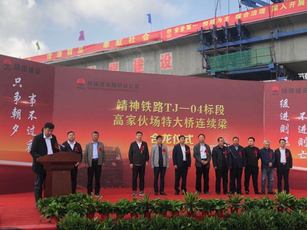 圖為甘肅鐵科總監(jiān)代表趙顯在合攏儀式上致辭