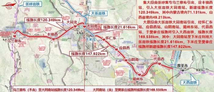新建集寧經(jīng)大同至原平鐵路(簡(jiǎn)稱集大原鐵路)位于華北北部,北接內(nèi)蒙古自治區(qū)烏蘭察布市,途經(jīng)山西省大同市、朔州市,南連忻州市并經(jīng)由大西客專與山西省會(huì)太原貫通。線路全長(zhǎng)290.116公里(其中新建268.5公里),設(shè)計(jì)速度250千米/小時(shí),項(xiàng)目建設(shè)工期4.5年,是國(guó)家中長(zhǎng)期鐵路網(wǎng)規(guī)劃“八縱八橫”高鐵網(wǎng)呼南通道的重要組成部分。建成開(kāi)通后,呼和浩特至太原、大同至太原列車運(yùn)行時(shí)間將分別縮短至150分鐘、76分鐘,對(duì)于內(nèi)蒙古、山西以及華北地區(qū)的經(jīng)濟(jì)發(fā)展乃至全國(guó)“八縱八橫”鐵路網(wǎng)的完善都有著重要的意義。