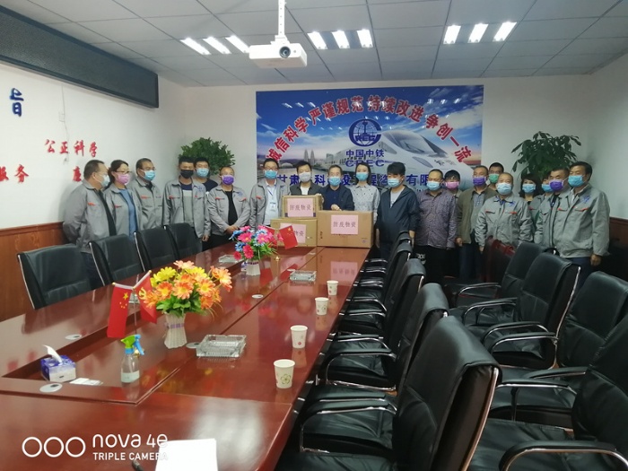 圖為機(jī)關(guān)支部向蘭州新區(qū)項(xiàng)目發(fā)放防疫物資