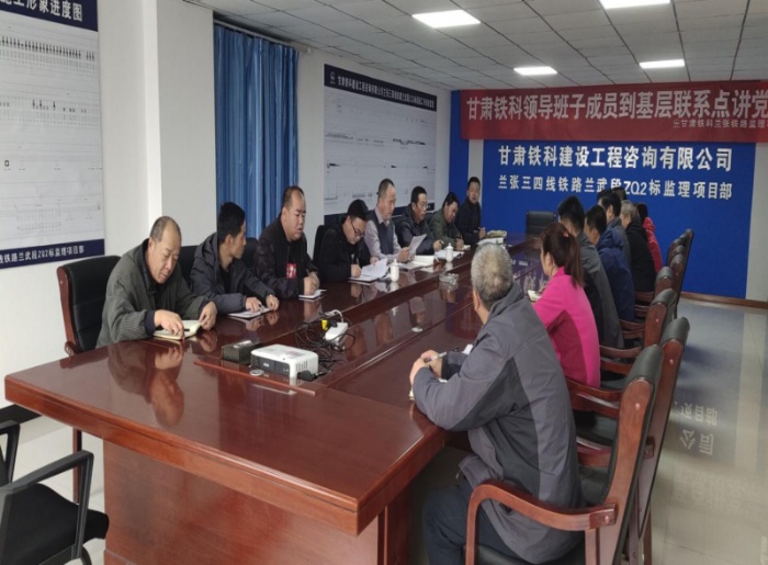11月4日,公司黨委書記、執(zhí)行董事張紅利到基層聯(lián)系點(diǎn)靖神鐵路監(jiān)理項(xiàng)目部,黨委副書記、總經(jīng)理陳英福到蘭張三四線鐵路監(jiān)理項(xiàng)目部講黨課。兩項(xiàng)目部駐地監(jiān)理人員參聽了黨課。