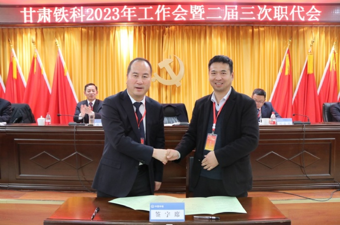 2月6日,甘肅鐵科召開2023年工作會暨二屆三次職工代表大會。會議傳達了中鐵科研院2023年工作會暨二屆四次職代會等系列會議精神。公司黨委書記、執(zhí)行董事陳英福作重要講話并代表領(lǐng)導(dǎo)班子述職述廉,總經(jīng)理、黨委副書記劉金剛作行政工作報告。公司領(lǐng)導(dǎo)班子成員、全體職工代表和工作會議代表共63人通過“線上視頻+線下會議”的形式出席會議。